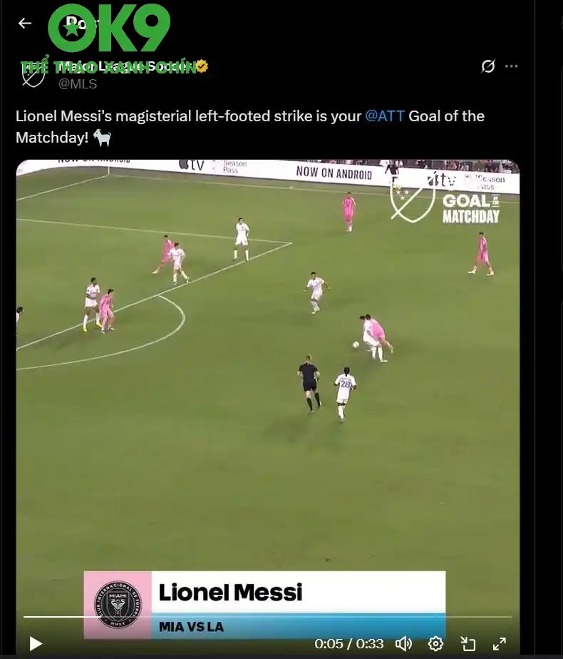 Danh hiệu “Bàn thắng đẹp nhất vòng 29” đánh dấu lần thứ 6 Messi được vinh danh ở hạng mục này trong mùa giải MLS năm nay. Một con số quá ấn tượng, phải không anh em? Nó cho thấy sự ổn định và đẳng cấp của Messi, dù anh đã ở bên kia sườn dốc sự nghiệp.